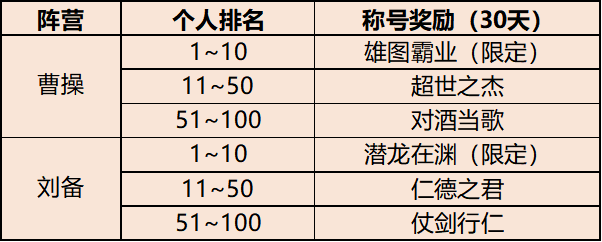 (1)活动期间,可选择加入曹操/刘备阵营,并以阵营为单位进行比拼