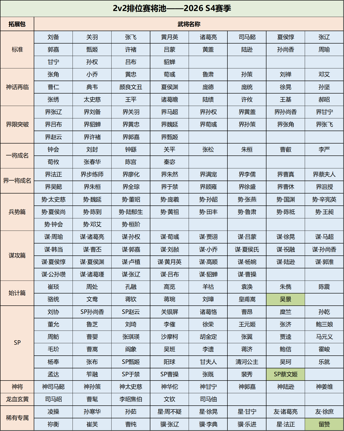 【2v2排位赛将池】
