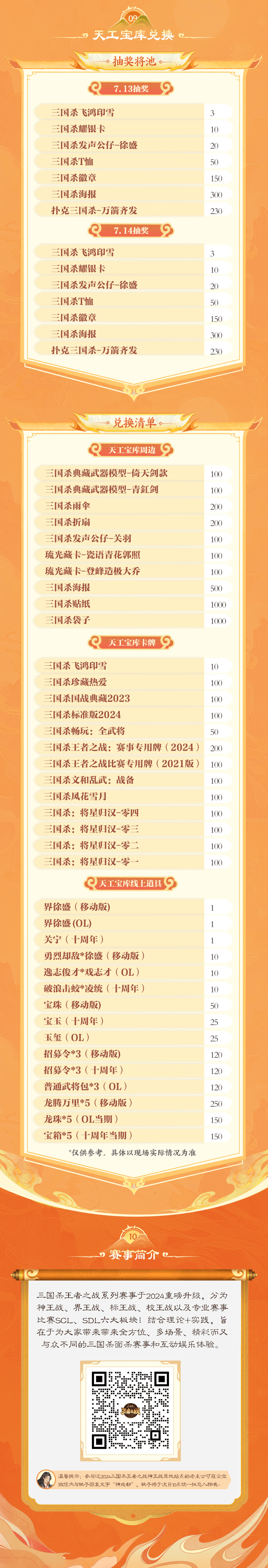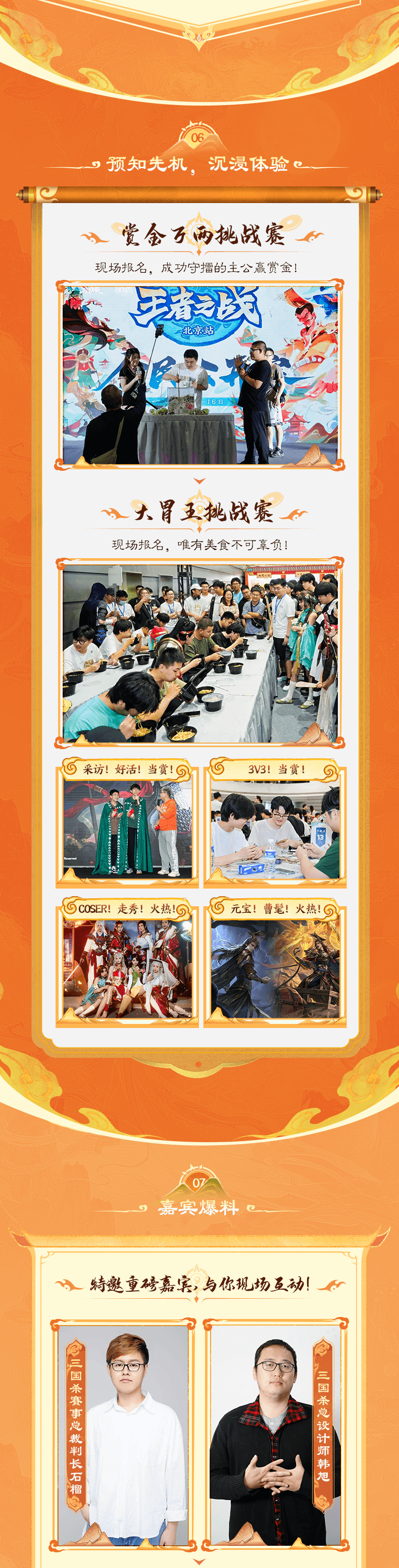 除此之外,现场还有多重福利——直通2024三国杀年终盛典专属名额、殺帝、殺圣、殺宗、殺皇等至尊称号、大量武将/皮肤/手办/周边,更有多个沉浸式环节——赏金万两挑战赛、大胃王挑战赛、Coser精彩走秀、随机采访环节等你体验。详细的信息,请各位主公往下看。