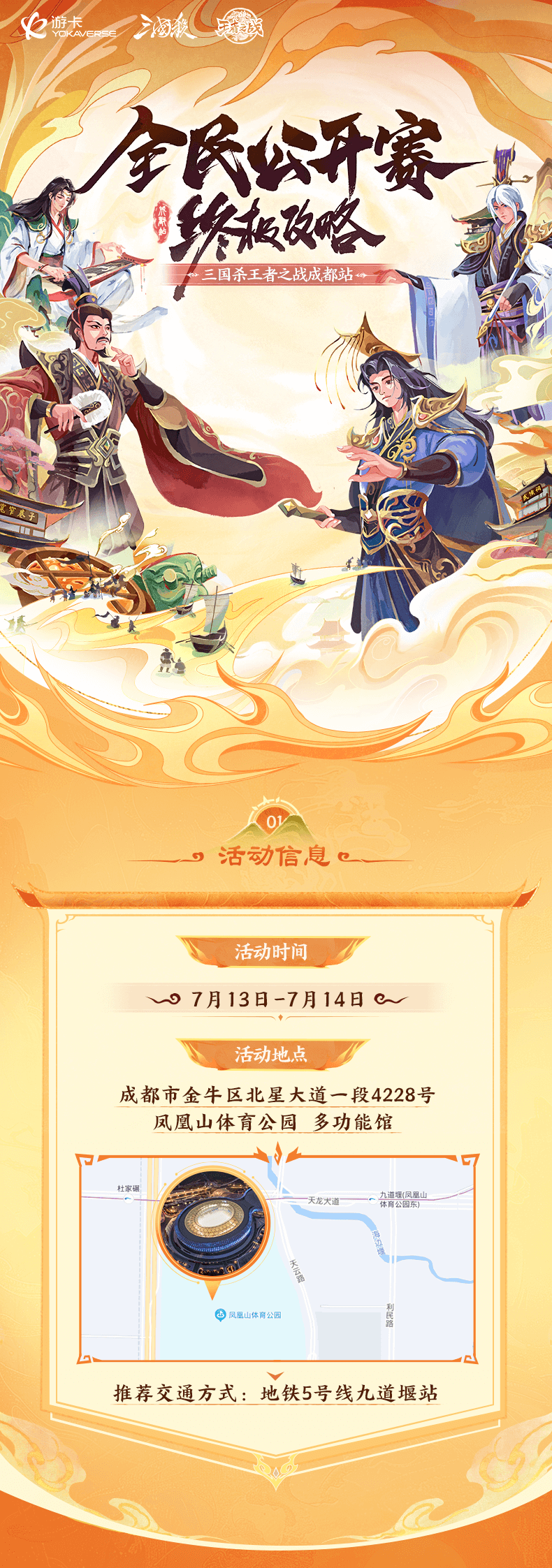 7月13日-7月14日,令人期待已久的三国杀王者之战全民公开赛将于成都盛大开启,超巴适的千人面杀再次来袭。除了延续的殺币玩法和段位积分规则,本次公开组还将上新欢乐3V3模式,敬请主公们前来体验!赶快报名来到现场大杀四方,将赛事奖金、限定闪卡、精美手办、各种周边统统抱回家!