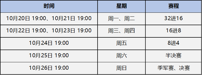 32支战队两两对抗,采用单败淘汰制,除总决赛为BO9(九局五胜制)外,其余比赛均为BO7(七局四胜制),具体比赛规则与群雄逐鹿资格赛相同。