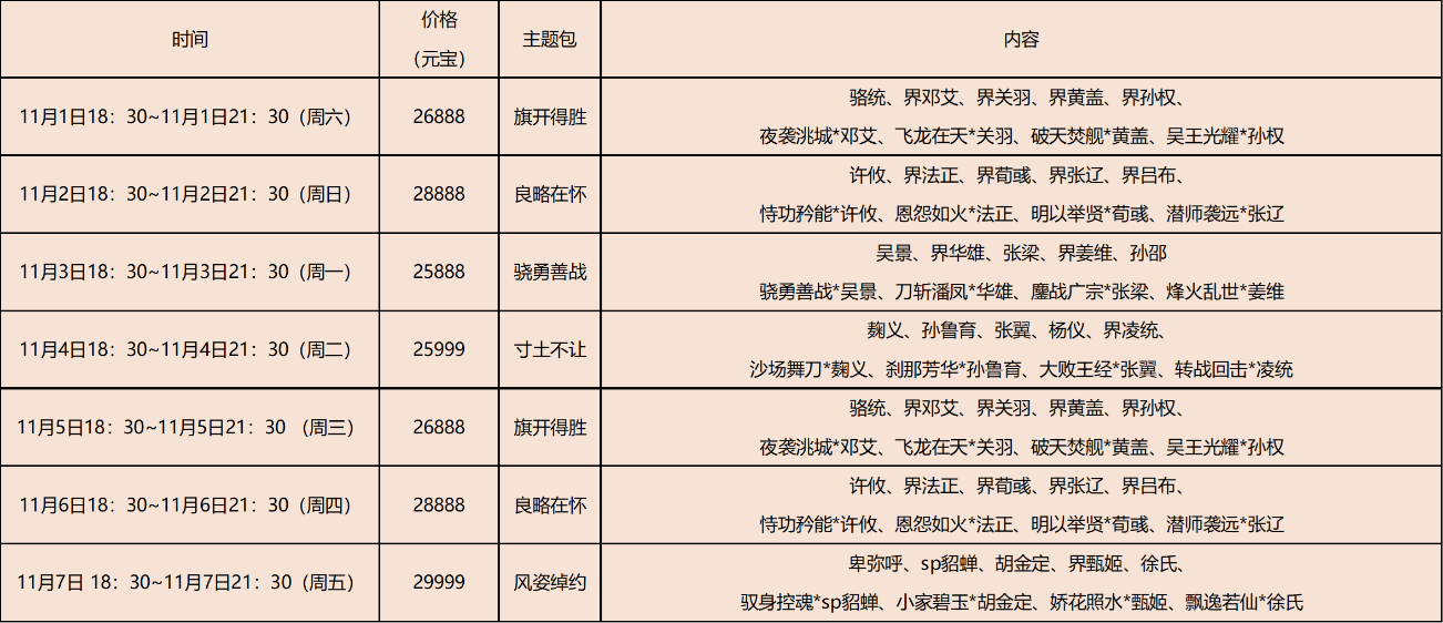 (3)稀有皮肤礼包(魏/蜀/吴/群),100元宝/个,每日限购99个