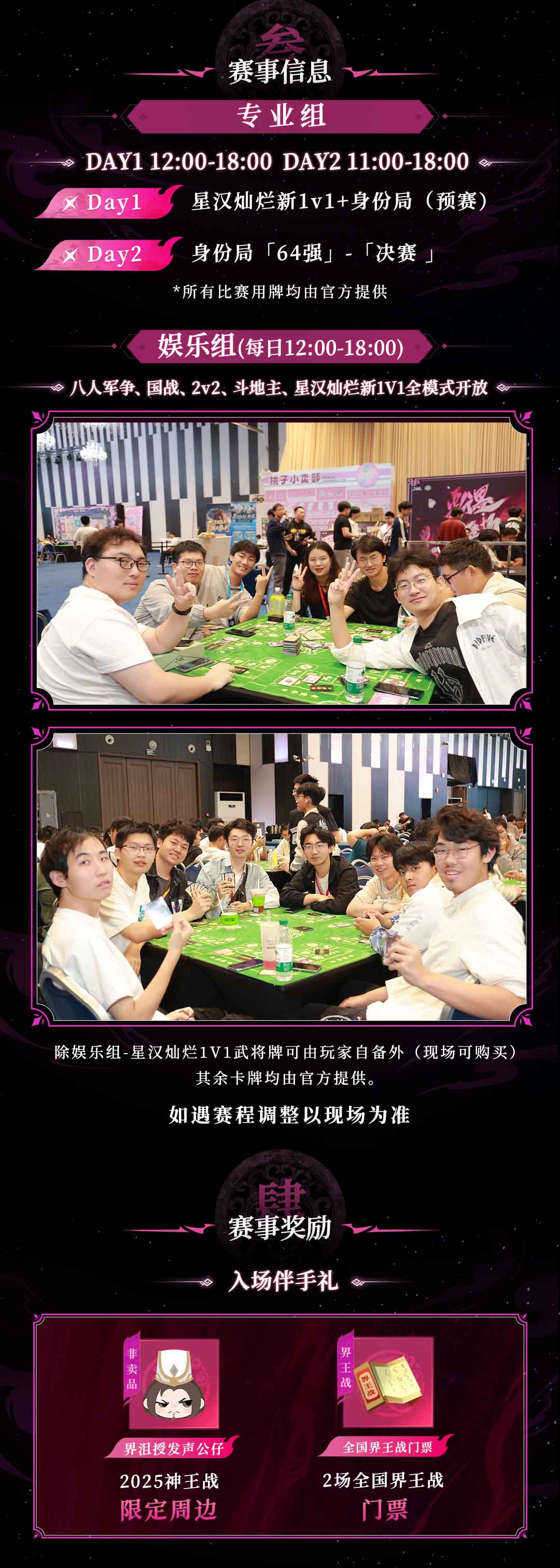 专业组加入全新玩法,星汉灿烂1V1+八人军争身份局双重模式,角逐超2万元奖金、段位积分、2025赛事专属武将纪念闪卡及2025三国杀王者之战年度盛典直通名额;娱乐组保留军争八人局、斗地主、国战、2v2及星汉灿烂1V1等自由匹配的经典模式,通过对局还可获取殺币兑换天工宝库超多福利!贾诩发声公仔首发,现场福利抽奖一应俱全,报名签到即可领取伴手礼:2025神王战限定“界沮授发声公仔”(非卖品)及全国界王战双场门票,专业组可额外领取星汉灿烂·共砺卡包与蚀心入魔·疑卡包,娱乐组可额外领取三国杀王者之战新手体验牌。