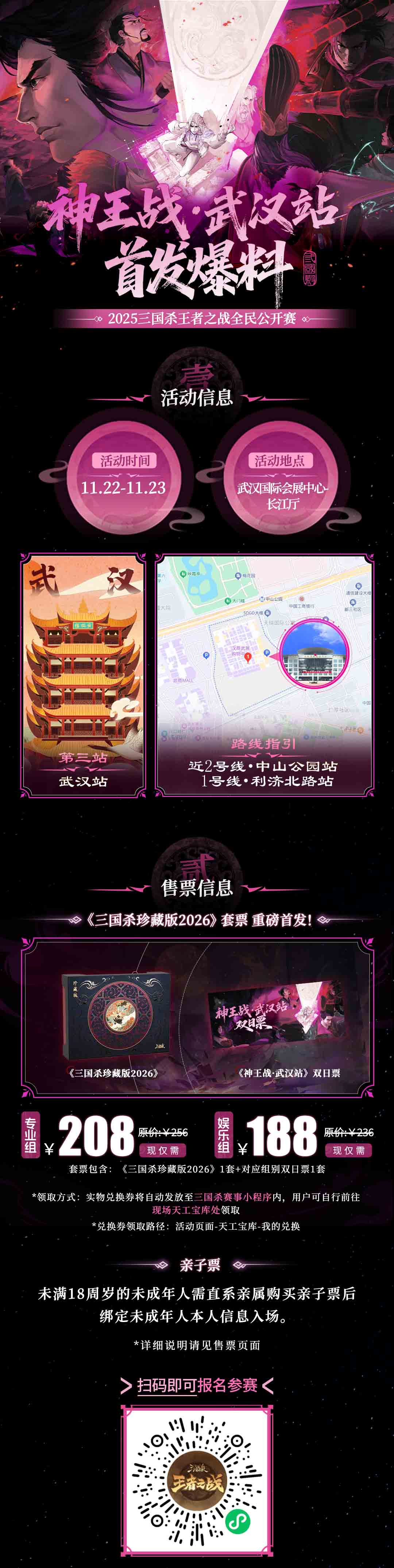 2025 年 11 月 22 日 - 11 月 23 日,三国杀王者之战全民公开赛将在武汉盛大开启,现已开放报名,珍藏票型更优惠。