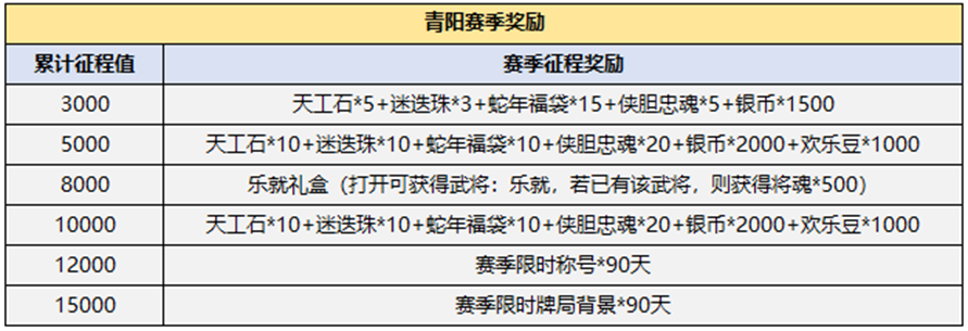 通过【特惠】-【赛季】进入活动界面,在青阳赛季中,玩家可通过参与指定模式的日常牌局以及完成里程任务两种形式获取赛季积分—征程值,累积征程值可获得相应的奖励,包括永久武将及限时称号等。