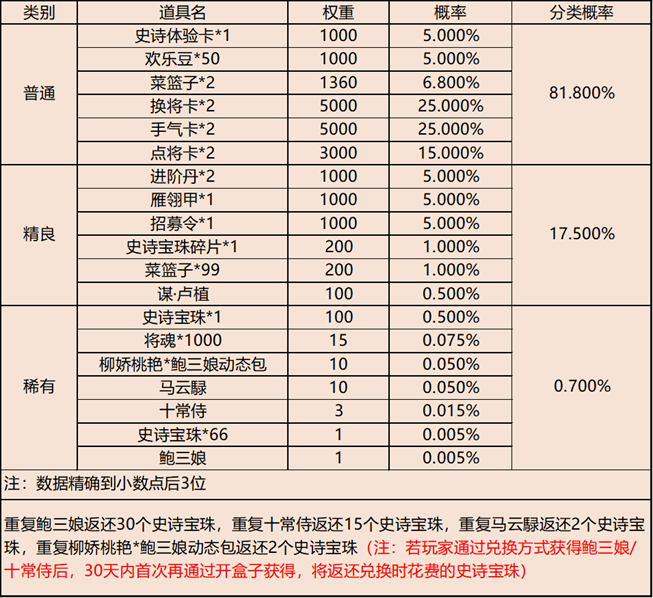 银币礼包概率公示: